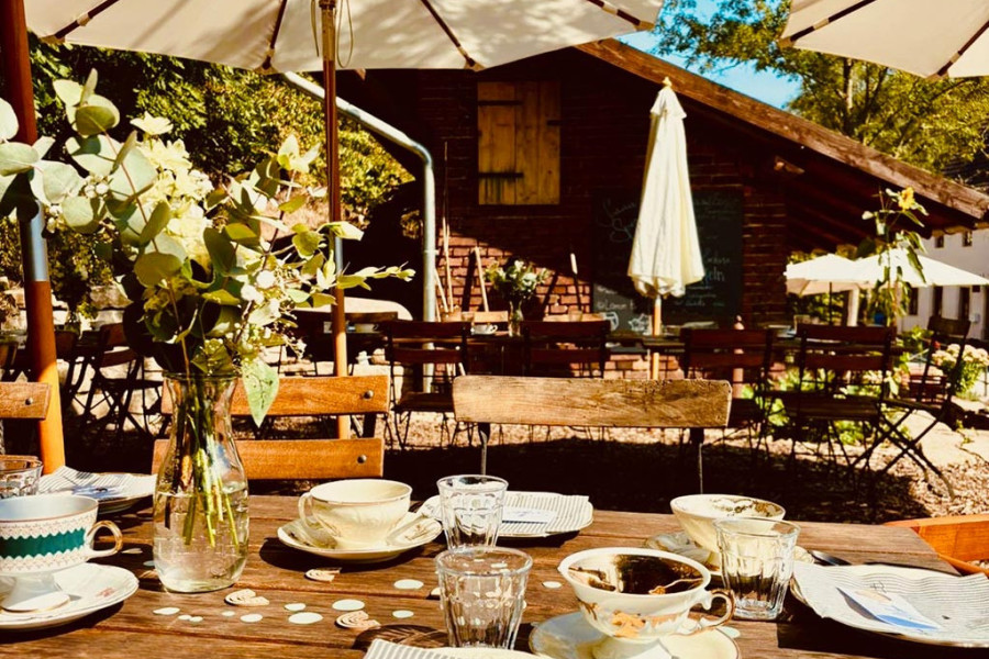 Es gibt Orte, die muss man nicht erklären. Man kommt an, und es ist sofort da: dieses Gefühl, angekommen zu sein. Der weiche Waldboden unter den Schuhen, der Blick über die Beete, der Duft von frisch Gebackenem aus der Küche. Irgendwo summen die Bienen, Schmetterlinge taumeln über die Blüten, und am Wasser stehen die Libellen still in der Luft.