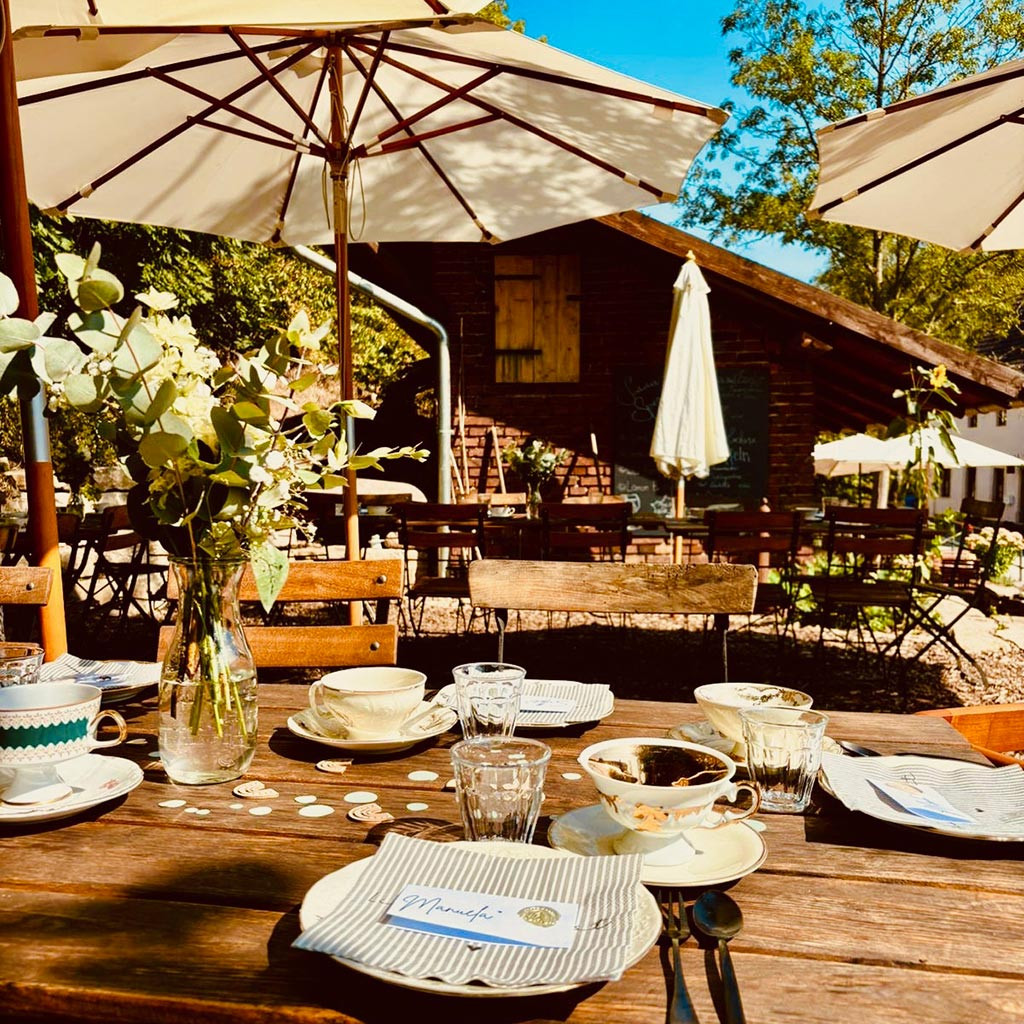 Alles, was auf den Tisch kommt, machen wir selbst oder beziehen es aus der Region. Der Kaffee von RöstGut aus Leipzig, der Ziegenkäse von Hof Schleckweda, das Fleisch aus Etzdorf, das Obst und Gemüse vom Grünen Dreieck. Die Kuchen backen wir am Tag selbst. Was nicht geht, sagen wir vorher – nicht hinterher. Wir gestalten Ihnen die perfekte Sommer-Gartenparty – ganz nach Ihrem Geschmack.